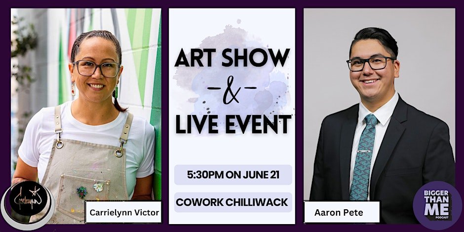 This National Indigenous Peoples Day, on June 21st, immerse yourself in a transformative evening that combines art, culture, and conversation, honouring the rich heritage and vibrant creativity of First Nations communities with renowned artist Carrielynn Victor and charismatic podcast host Aaron Pete. Don't miss the exclusive art exhibit, gourmet culinary delights, and an engaging conversation that promises to enlighten and inspire. Eventbrite: https://btmvictor.eventbrite.ca